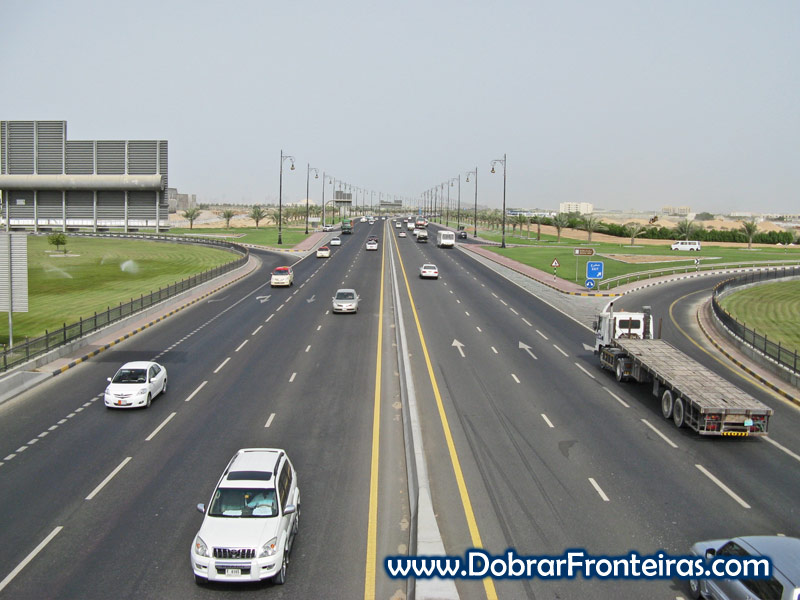 Estrada próximo do aeroporto de Sharjah, Emirados Árabes Unidos