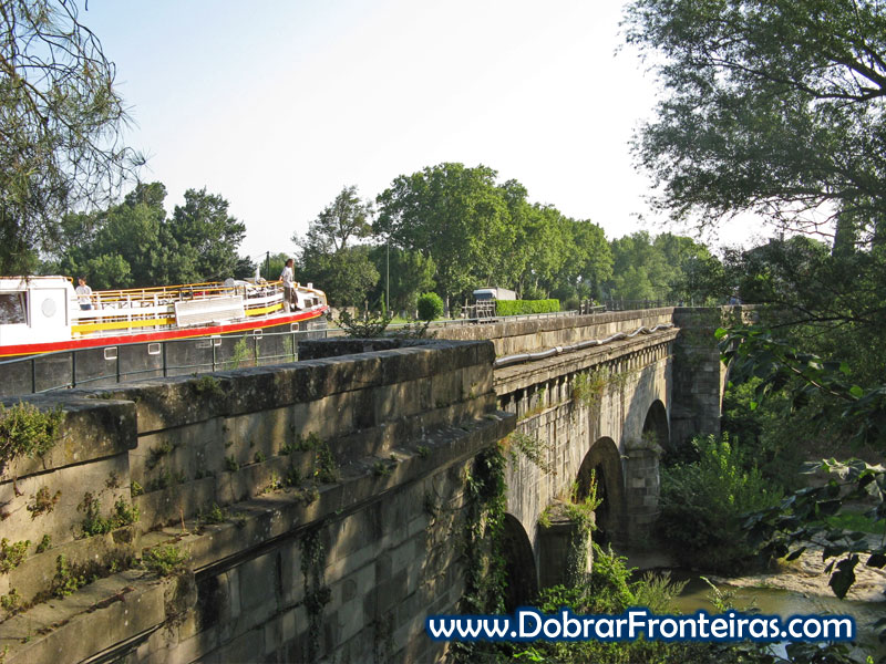 Barco no canal du Midi, numa ponte sobre um rio!!!