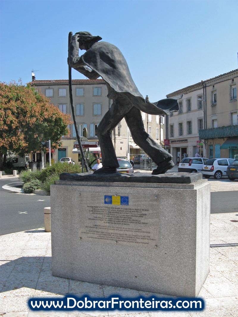 Deixa-me em Castre junto a uma estátua do peregrino de Santiago. Estes locais tocam-me de perto, pois agora também sou um deles. Tenho pouco tempo para este local que fica na rota da mais antiga peregrinação cristã, e depois de comprar alguma comida segue-se uma demorada espera de 30 minutos por uma boleia para Albi. Lá parou um casal jovem que me levou por 5km até um cruzamento no meio do nada onde esperei 5 minutos por um senhor que me levou por mais 10km até ao local onde arranjaria a boleia final para Albi.