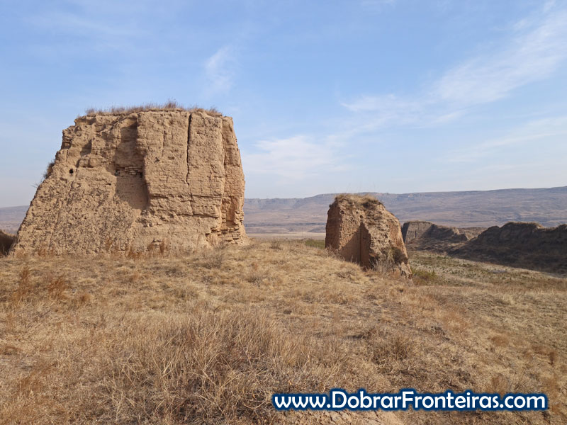 Aqui a muralha é bem diferente: estende-se pela planície e pouco mais resta do que uns montes de barro. Felizmente é notório o esforço das autoridades em recuperar este património.