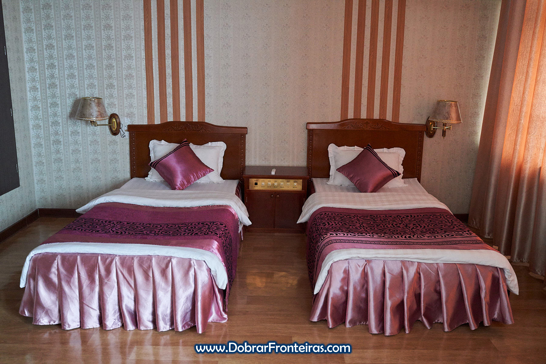 Em Pyongyang fiquei nos hoteis Koryo e Yanggakdo, dois dos maiores e mais populares da cidade. Ambos estão talvez ao nível de um 4 estrelas no que diz respeito aos serviços oferecidos, onde se incluem bares, restaurantes, piscina, ginásio, cabeleireiro, e por aí fora. A decoração dos quartos, especialmente do Koryo, é uma viagem no tempo ao requinte dos meados do século passado.
