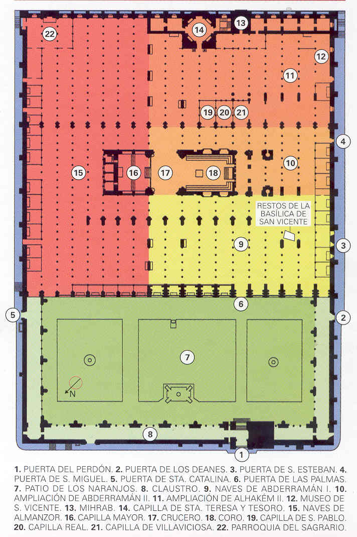 Iniciaram assim a construção de uma infinidade de mesquitas e palácios. Entre estas mesquitas encontrava-se aquela que se viria a tornar numa referência em todo o mundo Islâmico da época. Inspirada na de Damasco, a mesquita sofreu sucessivas ampliações até se tornar a enorme floresta de colunas e arcos vermelhos e bejes que os cristãos encontraram em 1236 aquando da reconquista cristã do califado da Andaluzia, que até aí tinha dominado quase toda a Península Ibérica.