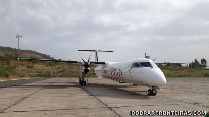 Oito horas da manhã do meu primeiro dia de viagem à Etiópia. Aterro em Gondar. Saí há mais de 24 horas do Porto com destino a Barcelona, de onde um voo da Egyptair com uma prolongada escala nocturna na cidade do Cairo me trouxe até Addis Abeba onde cheguei a meio da noite. Pela manhã apanhei o primeiro voo interno da Ethiopian com destino a Gondar.