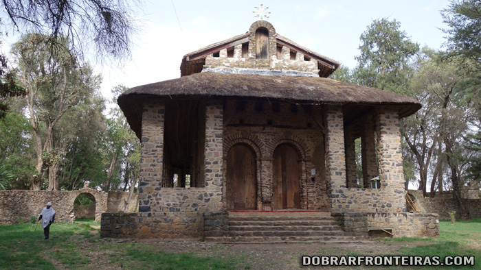 O bilhete do castelo de Gondar é válido para visitar também este local. O mais incrível são desde logo as enormes raízes de árvores que envolvem os muros de pedra fazendo lembrar as imagens dos templos de Angkor Wat.