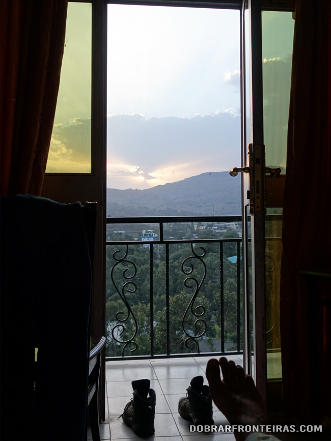 O L-Shape foi assim a minha primeira experiência com a hotelaria etíope. O valor que paguei pelo quarto, 230Birr (cerca de 9,5€) pareceu-me minimamente justo. Fiquei num quarto com casa de banho privada, água quente, tv, wi-fi e, uma vista espectacular!