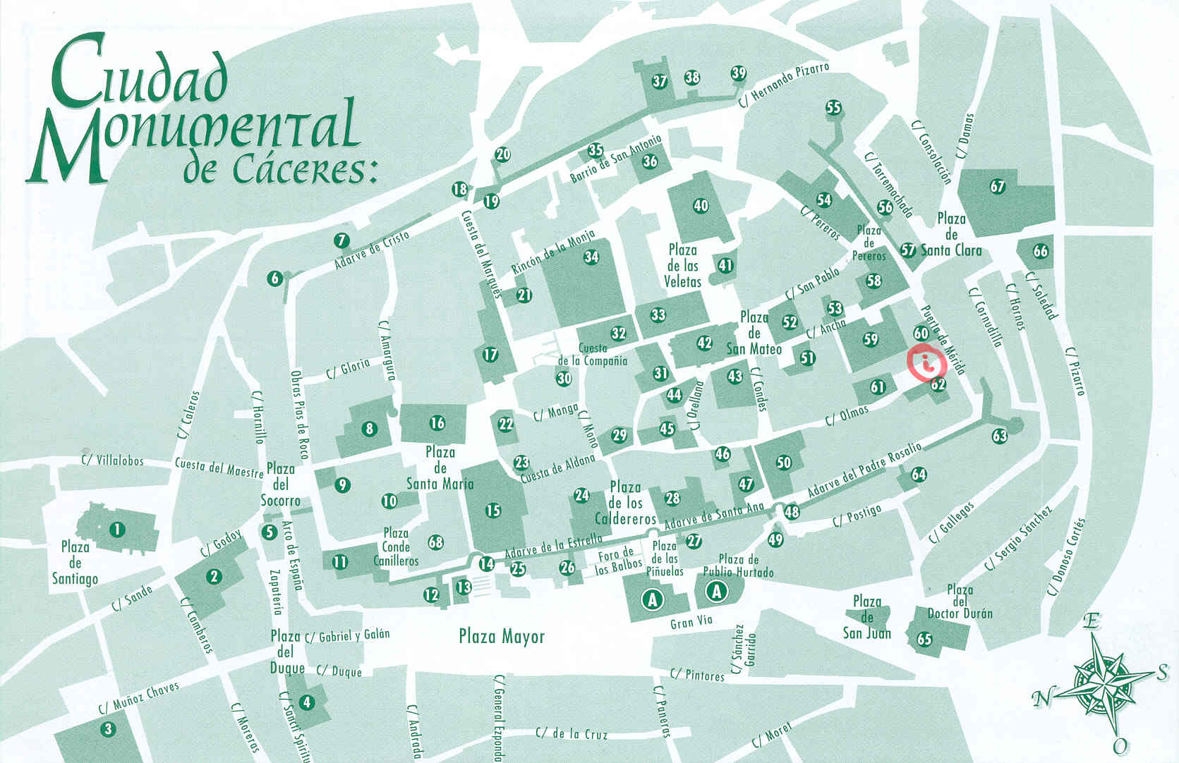 Mapa do centro histórico de Cáceres