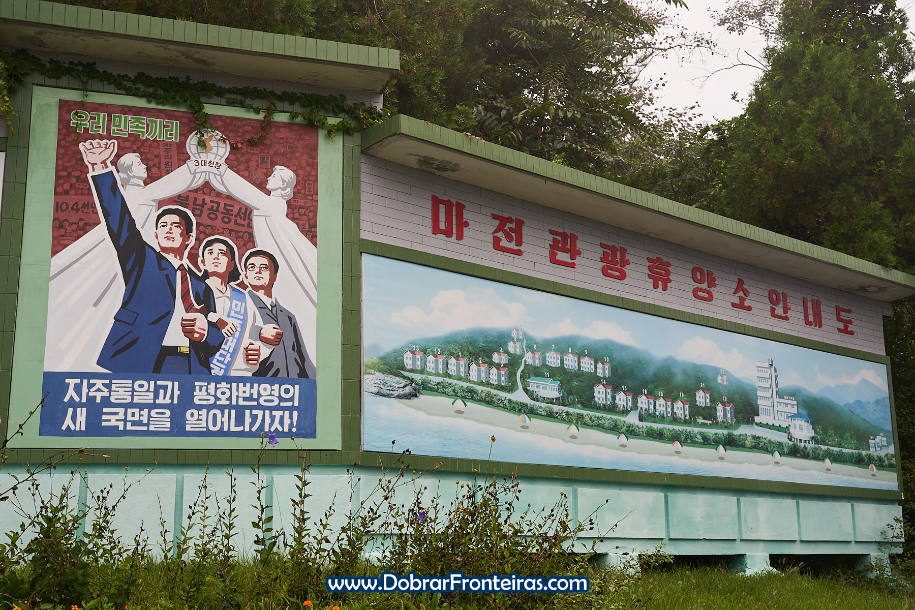A arquitectura é monumental e futurista, especialmente uma nova rua com enormes prédios atribuídos a professores e cientistas, construída em 2015. Saímos da cidade sob o monumento da reunificação da Coreias e seguimos para Este.
