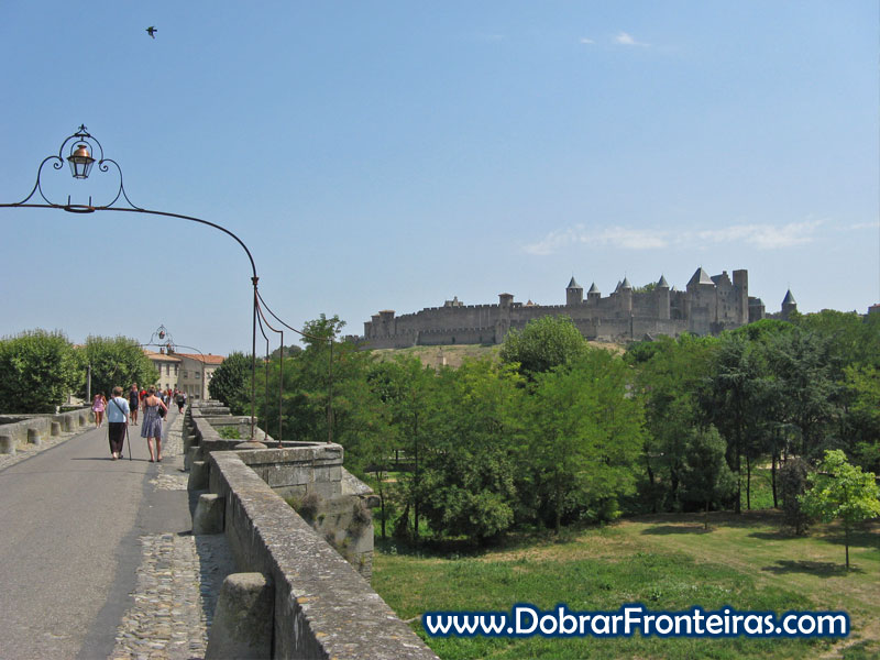 Assim que ele me deixa, pára imediatamente outro carro que me leva. Também não vai para a cidade, mas deixa-me supostamente perto. Decido ir a pé. Na minha cabeça pairam imagens de castelos medievais, que espero ver a aparecer no horizonte a qualquer momento. Mas não. Afinal não estou assim tão perto e o lado de que me aproximo também não é propicio a essas vistas épicas. Caminho sem água debaixo de um sol escaldante até encontrar um hipermercado para me abastecer antes da aproximação final à cidade muralhada. Chego finalmente à cidade medieval de Carcassone.