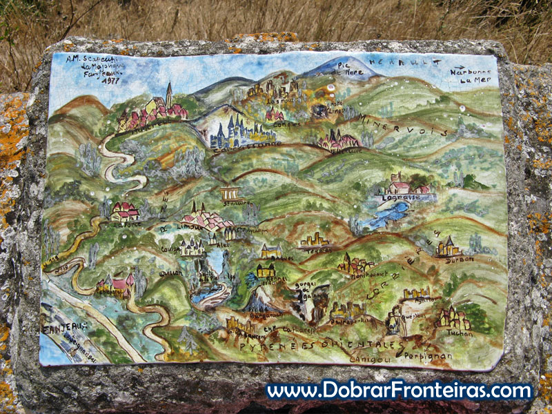 Mapa com as aldeias e mosteiros em redor de Fanjeoux