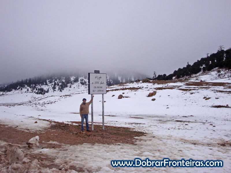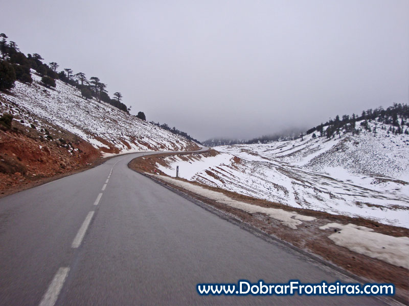 Azrou é uma cidade que fica no sopé das montanhas do Altas Médio perto da qual se podem observar macacos no seu habitat natural. Como as fotos foram tiradas em Fevereiro, as montanhas encontram-se cobertas de neve, mas felizmente todo o percurso estava transitável.