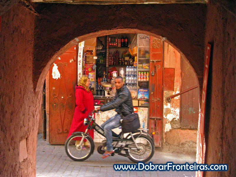 Mobilete nas ruelas de Marraquexe