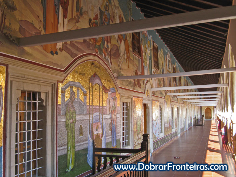 Coloridos frescos e mosaicos no mosteiro de Kikos, Chipre