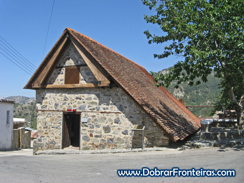 Estava um padre a regar o jardim do cemitério ao lado, mas ele também não me pode ajudar. É de arquitectura muito semelhante à de Pedoulas, com paredes de pedra e telhado forrado a madeira. Data do século XIII.