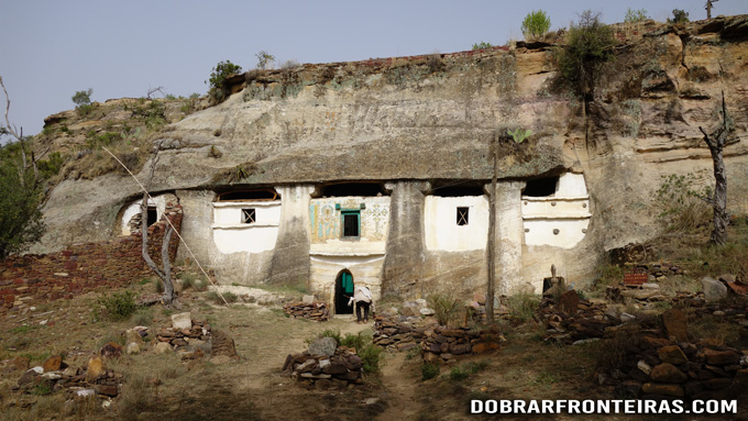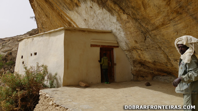 Lá fora, numa pequena cavidade na rocha, tenho o primeiro contacto com ossadas humanas de antigos monges, semelhantes às que viria a encontrar em grande quantidade no dia seguinte no mosteiro de Abuna Yematah Guh.