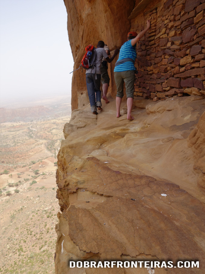 O desafio final para entrar na igreja inclui subir mais alguns blocos de pedra e caminhar por um estreito trilho escavado na rocha, sempre com um precipício de 200 metros ao lado.