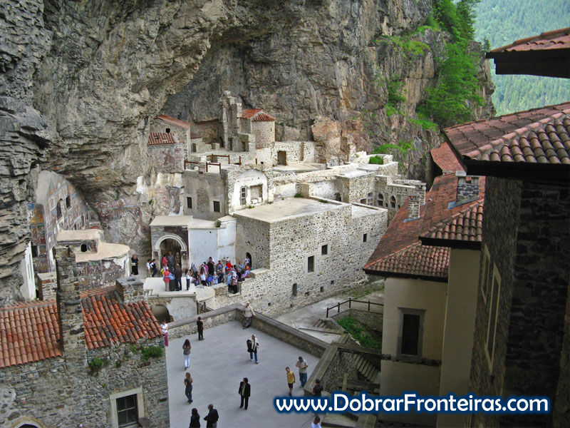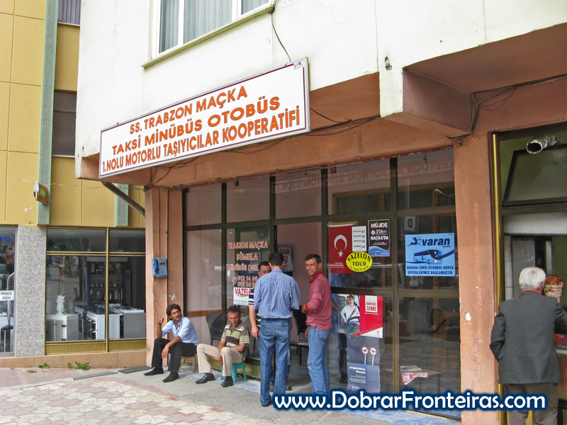O senhor da recepção, que fala pouco inglês, vai comigo até ao local onde partem os mini autocarros para o mosteiro de Sumela e também para Trabzon. Pelo meio-dia apanho uma destas carrinhas que vem já de Trabzon com duas raparigas. Pago 12,5YTL ficando acordado que o motorista espera 2 horas por nós, tempo suficiente, segundo eles, para visitar o mosteiro.