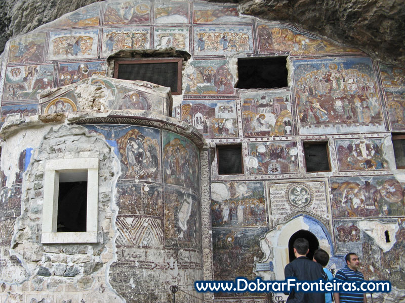 Não deixa de valer a pena uma visita por causa disto. Os fresco são maravilhosos. Os que estão mais altos que os braços destes visitante menos bem vindos, mantêm o seu esplendor e depois, na verdade, ninguém vai a Sumela por causa dos frescos, mas sim pelo local onde o mosteiro foi construído. Hoje obviamente não faltam guardas e sinais a relembrar que é crime escrever nos frescos.