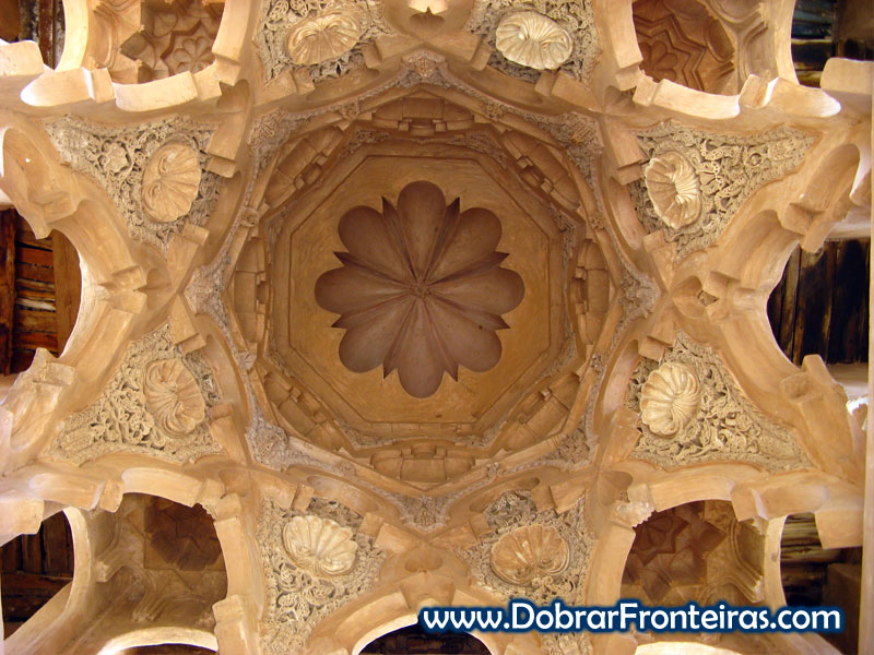 O interior do topo da cúpula é em pedra ricamente esculpida, um exemplar único da belíssima arquitectura árabe.