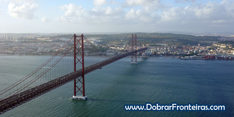 Ponte 25 de Abril vista do topo do Cristo Rei em Almada
