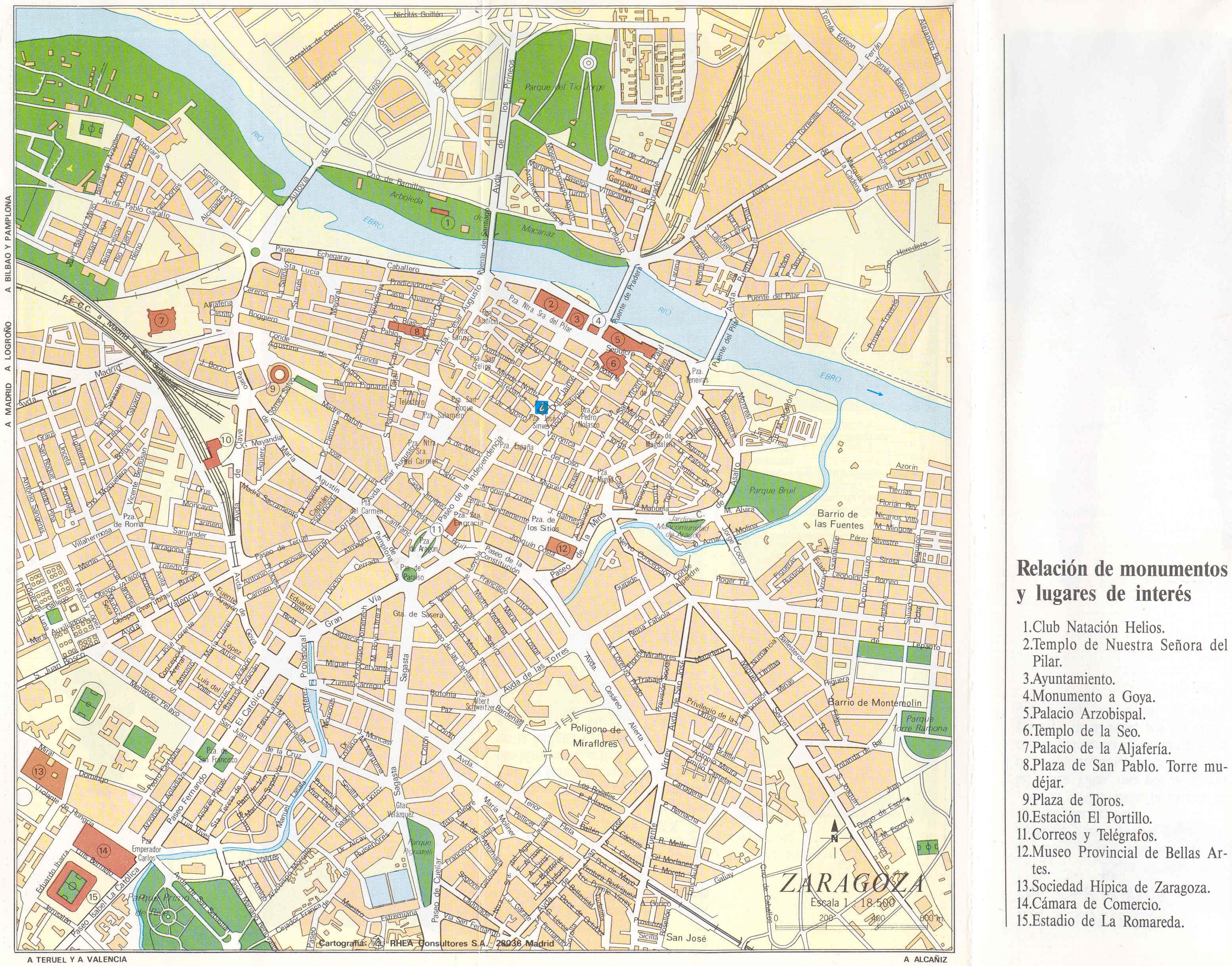 Mapa turistico de Zaragoza, Espanha