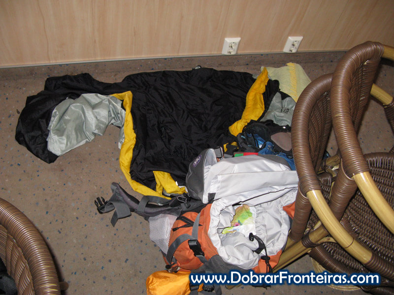 A minha tralha no chão do barco