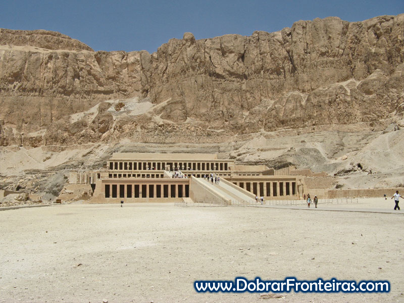Desta vez recuso entrar no comboio para percorrer os 50 metros até ao monumento. O edifício foi totalmente restaurado. Neste restauro incluíram-se as estátuas da rainha Hatshepsut (que o mandou construir) e, que haviam sido destruídas depois de um problema amoroso desta com o arquitecto.
